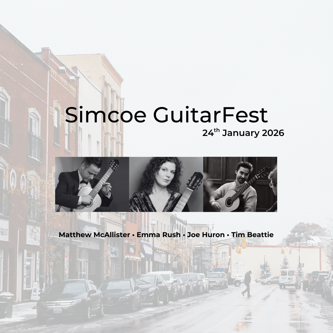 Join us for the inaugural Simcoe Guitar Festival on Saturday, 24 January 2026, at Burton Ave United Church in Barrie (accessible venue). Guitarists of all ages and levels are welcome to attend!